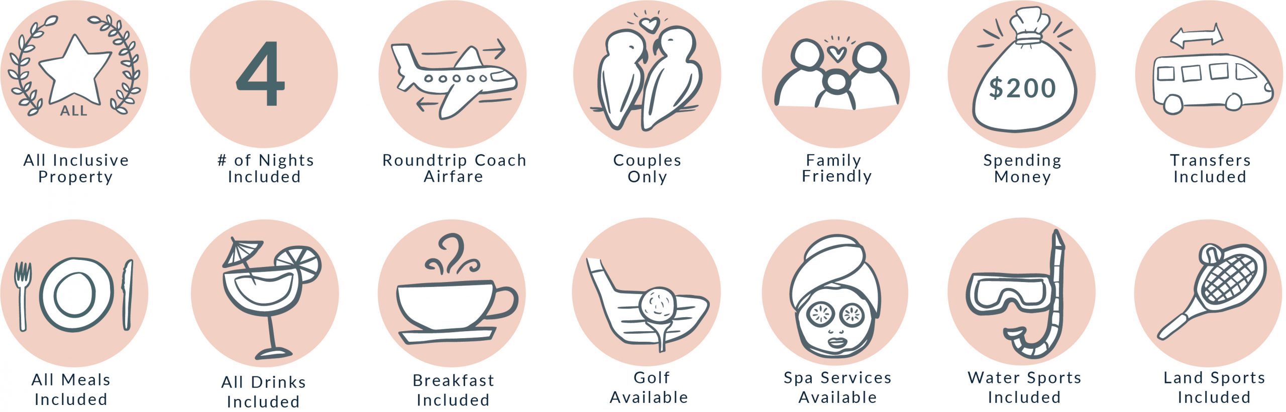 As you scroll through your Above & Beyond!™ destinations, you will see the helpful icons below listed next to each property. These make it easy for you to see at a glance all the things that are included in that particular destination.